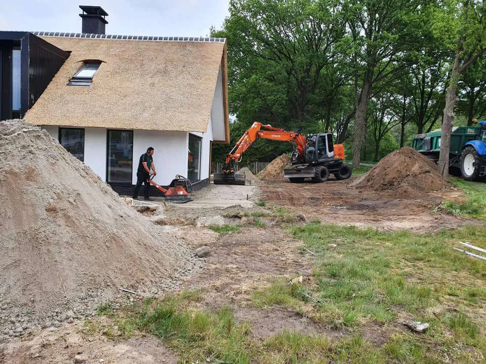 Voor deze klant legden we oprit, paden en terrassen aan met verschillende soorten bestrating en vulden we de tuin aan met passende beplanting.